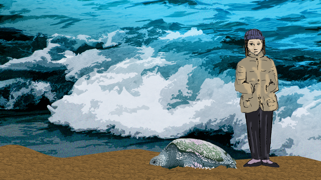 beach water ocean cold waves surf tortoise blue chilly sand crash