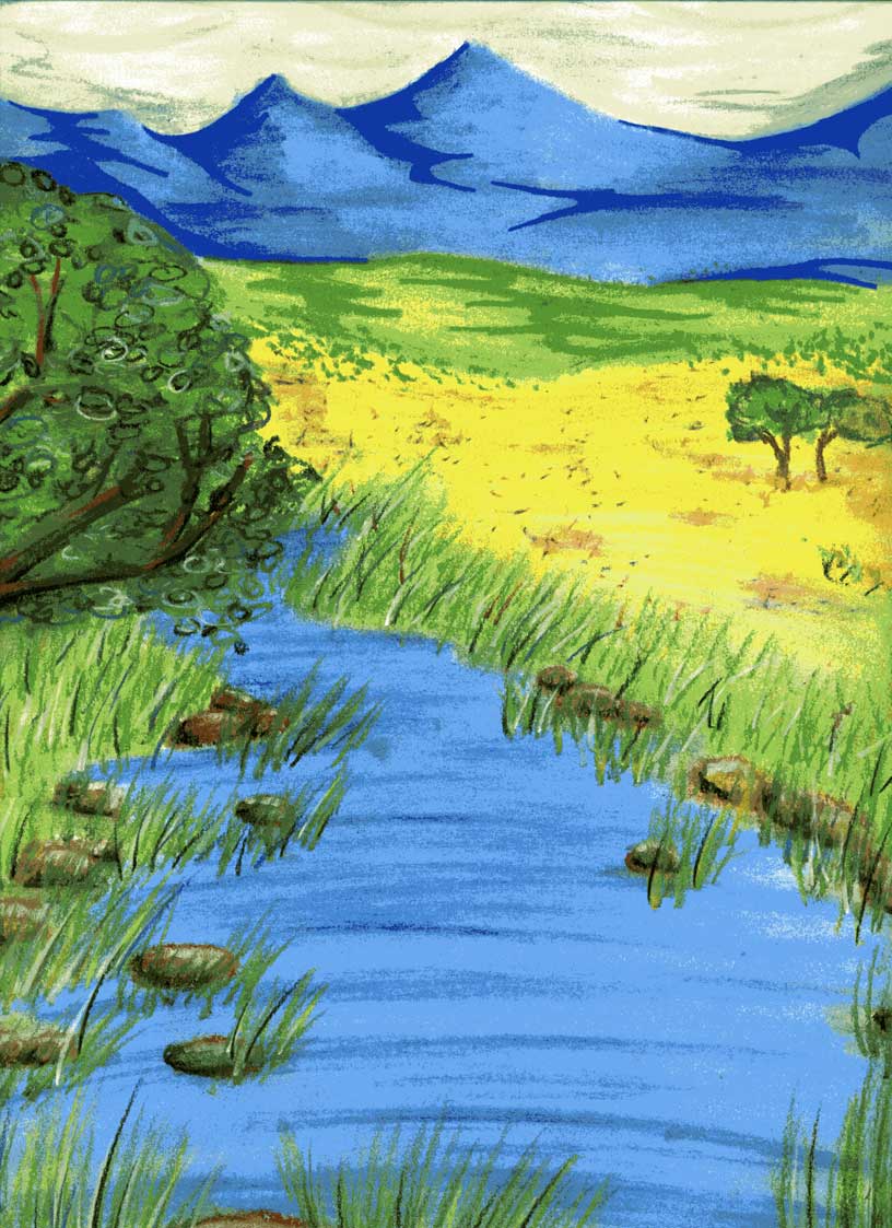 mountains Boulder colorado river grasslands landscape scenic nature colored pencil