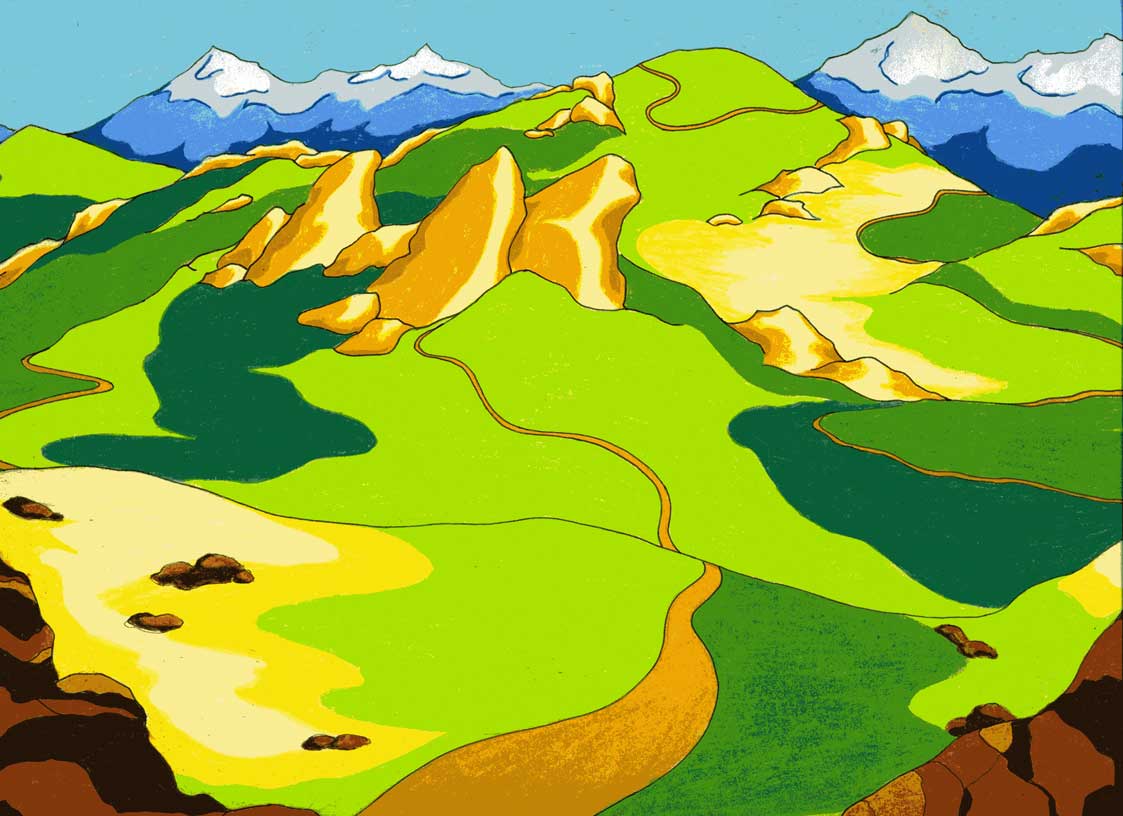 mountains trail colorful colored pencil rocky hills landscape