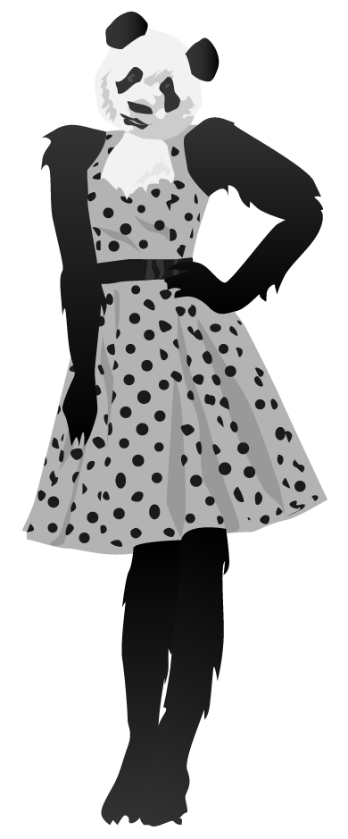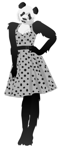 panda bear character dress “polka dot” bamboo China Chinese BW “black & white” “black and white”