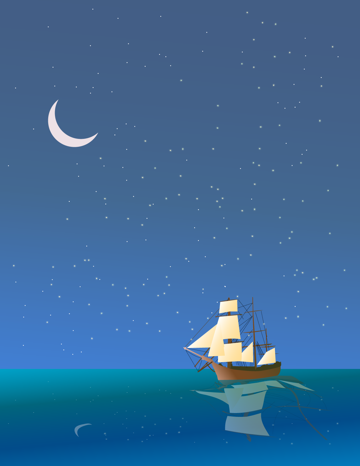 ocean sea boat shipwreck oceanliner mast sails waves stars voyage explore adventure conquest trade